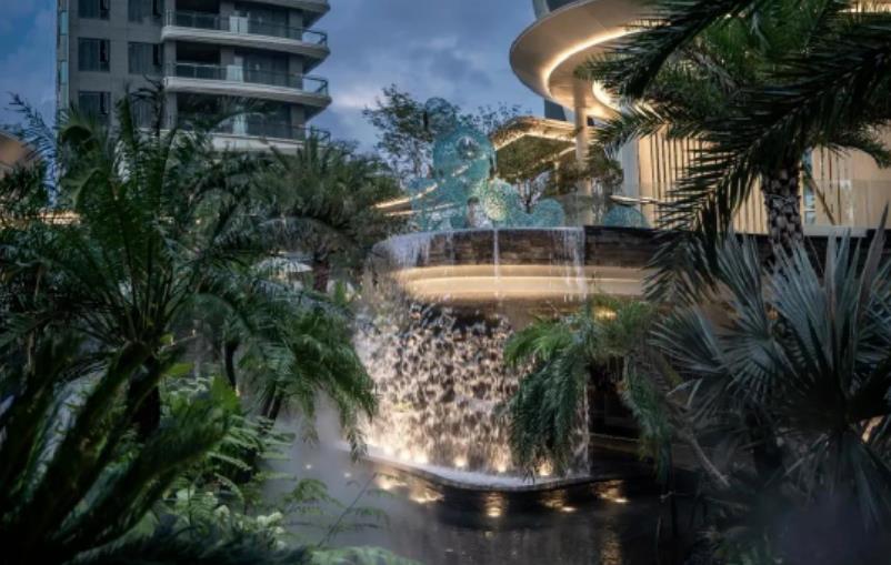 ???? 瀑布從將近5米的空中奔流而下,匯于郁郁蔥蔥的熱帶雨林下沉庭院,形成的溪流,穿梭于熱帶風(fēng)情的綠化之中。瀑布掩映在高低錯落的熱帶種植中,彎桿銀海棗、美麗針葵、圓葉軸櫚、彩虹鳥蕉、箭羽竹芋、青蓮竹芋等植物將此區(qū)域渲染出了濃郁的熱帶風(fēng)光。結(jié)合柔和的燈光,水霧,將人帶入了仙境。整個下沉花園煥發(fā)出勃勃生機,體現(xiàn)世界的面貌以及人類與大自然曾經(jīng)的zui原始的關(guān)系。