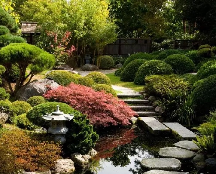 庭院的布局其實有很多規(guī)律可循,例如在我國的文學藝術作品當中,常用的起、承、轉、合,運用到園林的布局上便體現(xiàn)為疏、密、曲、直,可以通過高矮大小植物的排列組合,讓空間更有層次感、色彩感,還可以打造出舒適自在的感覺。